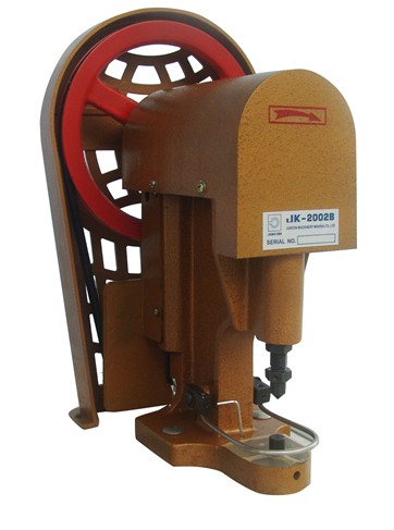 型号Model                          JK-2002B最高转速Max. speed                           300S.P.M动头轴行程 Spindle stroke   380MM机头外形尺寸Head size 312*270*490MM (L*W*H)重量 Weight     25KG电动机Motor                            0.37KM/380V 本产品适用于成衣、鞋、靴帽、伞针织、皮革制品、帐篷等多种行业上的钮扣、揿扣、饰扣等钮孔冲制。