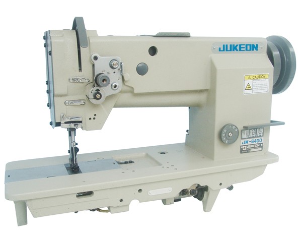 本机型是重科综合送料厚料平缝机的最新版,采用大型立式旋梭勾线,滑杆挑线。分为单针、双针,使用粗线专用旋梭。JK-6400H、JK-8400H在JK-6400基础上改进,加大针距至13mm。上下轴用滚针轴承支承,同步齿形带传动,柱塞式油泵润滑系统。采用针杆摆动与压脚送布牙同步送料方式。整机在综合性能上传动轻滑,澡声小,耐用度高。并设有保护旋梭超负荷的离合装置,确保了缝制品和旋梭的安全。