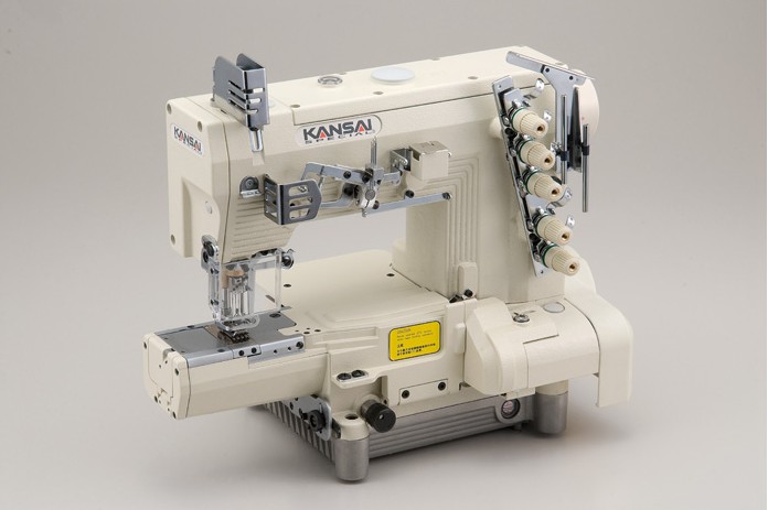3针筒式台两面缝装饰绷缝机,带自动切线,打线器设定在外边,可以选各种针位。