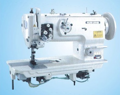使用機針:标准190R或135x17NM 本機適用于各種皮革、人造革、帆布等極厚的縫制 本機采用直針、大旋梭勾線滑杆挑線,同步齒形带傳動,旋梭部位自動加油,箱形送料,機壓脚、送料牙綜合送料機構