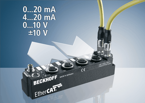 [2011年2月22日,德国] Beckhoff 最近推出一款将 2 个模拟量输入和 2 个模拟量输出完美结合在一起的全新型 EtherCAT 端子盒 EP4374 ,进一步完善了 IP 67 I/O 模块的产品系列。I/O 端子盒的组合方式多种多样,具有高度灵活性,使设备制造商能够根据自己的具体需求事先进行规划,因而更加经济高效。输入和输出通道可以针对 0...10 V、±10 V、0...20 mA 和 4...20 mA 等标准信号独立地进行参数设置。