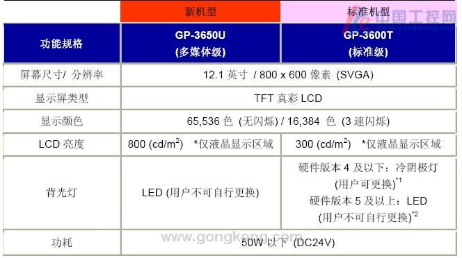 *1:硬件版本4 及以下:用户可自行更换,GP36*0 系列适用的背光灯型号[CA3-BLU12-01]。