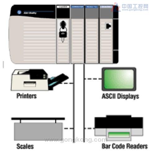 模块的两个ASCII端口可以分别独立设置,这使模块能运行在多种不同的配置下。在经过梯形逻辑的设置后,模块就能支持从SLC处理器中读写ASCII字符串。