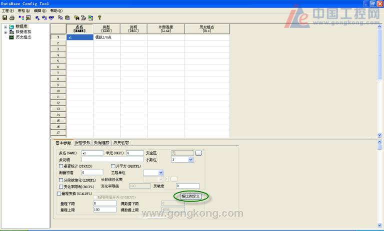 紫金桥组态软件模拟点组态新增功能,即通过在模拟点组态界面增加了按比例定义按钮,大大简化了计算方便了用户使用。