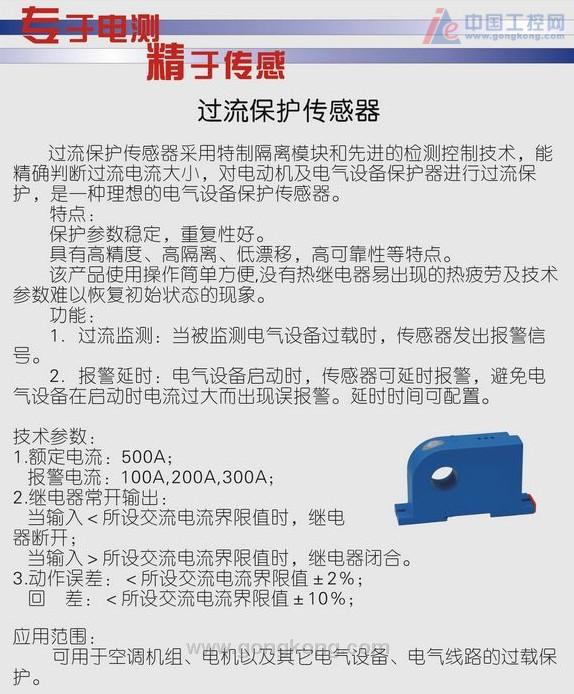 产品介绍: 维博电子过流保护传感器 取代热继电器,精度高,穿线孔输入更加方便,三个延时可选,三个报警点可设,价格更有优势。