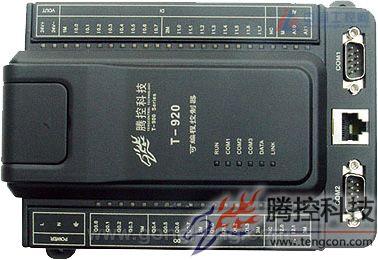 T-920 可编程逻辑控制器是腾控科技T-900 系列PLC 其中一款产品,使用最大频率72MHz的ARM 工业级CPU,外扩32M SDRAM 和4M FLASH,嵌入式操作系统,1M 用户程序存储区和100K 用户数据存储区。编程软件使用KW MULTIPROG,通过以太网下载程序,另有2 路RS232/485 接口。