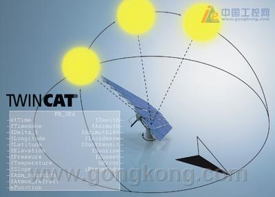 [2010年7月15日,德国] Beckhoff 的TwinCAT 太阳位置算法软件功能块能够在不使用传感器的条件下,准确计算全球任何时间任何地点的太阳角度。这种灵活的解决方案对抛物线太阳能面镜、太阳能光伏系统以及其它太阳能发电设备的太阳追踪设计带来了极大的便利,它能够自动追踪太阳位置,最大限度地获取太阳辐射。该软件的控制算法极为精确,对于太阳角度的误差计算精度可达到 ±0.001°,该软件也可用于其它应用场合,如楼宇的自动控制系统或者风力发电机的阴影闪烁率计算。