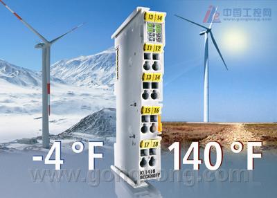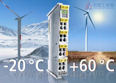 长期以来,Beckhoff 总线端子模块系统在设备自动化和楼宇自动化领域已得到成功应用,其工作温度范围符合 0…55 °C(32…140 °F)的标准,可完全满足这些应用领域的要求。而为了应对气候条件比较恶劣的“室外应用领域”,Beckhoff 已将一些精心挑选的标准总线端子模块和耦合器的工作温度范围扩展为 -20…+60 °C (-4…140 °F)。这些产品主要应用在新能源系统中,如风力发电、太阳能发电或潮汐发电设备,而这些设备经常需要在极端气候条件下运行。