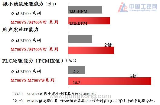 MITSUBISHI CNC M700V系列的微小线段处理能力、用户宏处理能力、PLC处理能力均较以往的M700系列有大幅提高。
