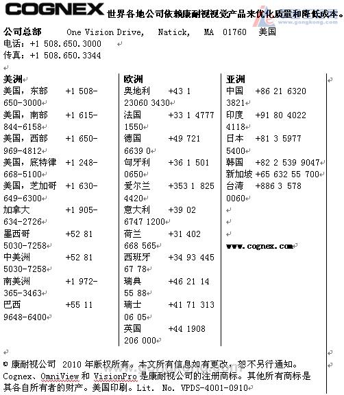 康耐视公司是视觉检测、引导和ID读码器方面的全球领导者。遍布全球的多家公司均采用康耐视视觉系统和ID读码器来提高其产品质量、降低生产成本以及跟踪生产线上的工件。康耐视产品采用引领世界达 25 年之久的创新型技术,能够提供最高的准确性、可靠性和性能,这一点获得了人们的广泛认可。全球目前共安装有 50 多万个康耐视系统,每天能够检验数十亿件产品,帮助各个行业部门的生产商分离缺陷工件,优化生产流程和实施全面的跟踪计划。康耐视总部位于马萨诸塞州的 Natick,办事处遍布美洲、日本、欧洲和亚洲地区,目前,康耐视中国通过遍布全国的专家团队和由40 余家授权合作伙伴组成的服务网络为大中华区客户提供快捷,专业的服务,帮助广大厂商赢在中国。