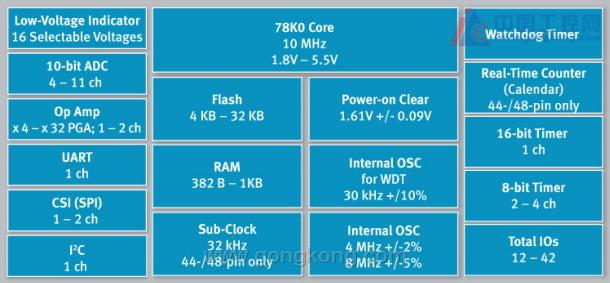 78K0/Kx2-L系列微控制器是Renesas瑞萨电子新推出的高集成度、高性能、高可靠性、低功耗8位MCU。目前上市的产品选型可参考下表。