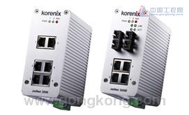 Korenix科洛理思(北尔电子集团)新品上市!! JetNet 3006系列是一款工业级6端口快速以太网交换机,配备4个10/100TX端口和2个电口/光口,并且支持3.2G交换矩阵。JetNet3006系列交换机不仅满足NEMA-TS2交控认证标准,支持冗余电源输入,并提供AC 1.5KV Hi-pot隔离保护和宽工作温度。因此,在恶劣的工业现场环境下,如工厂自动化、煤矿、铁路、水电厂等,Korenix JetNet 3006系列也能确保高质量的数据传输。