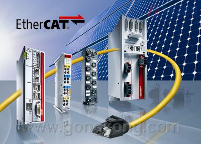 基于以太网的 EtherCAT 现场总线系统的拓扑结构灵活,非常适合用于光伏设备。例如,控制器与 I/O 信号之间的直接通讯(无需专用硬件)让高精度多轴运动控制成为可能,这些轴可通过 EtherCAT 分布式时钟实现同步,从而显著改善控制质量,加快设备处理速度。