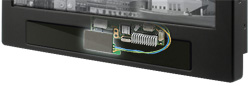 此外,MPC-10W5屏幕边框超薄。全铝材质整机只有1.22公斤重量,最大机身厚度也仅44.4毫米。使用VESA 标准75x75卡勾式壁挂铁件,由于机身设计轻薄,MPC-10W5可轻易地安装于墙上,或是完善地整合于店内广告牌或是大众交通运输显示系统。