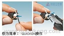 可现场组装的M8连接器如今采用QUICKON快速连接技术,十分易用: 卡入导线,切取电缆,拧紧外壳——完成!