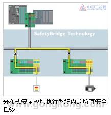 采用SafetyBridge技术的模块通过自动化网络交换安全信号。