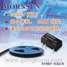 该系列产品除了具有常规定压隔离产品的通用特性以外,还具有3000VDC高隔离,超小体积(12.7*7.5*6.5)、功率密度更高的优点,满足260℃的无铅回流焊温度要求、满足ROSH指令要求、符合UL安全认证标准,工作温度在-40℃~+85℃、激光打标、可靠性高、国际标准化引脚方式等优点。公司提供卷盘包装,将方便客户自动化批量贴片生产,为客户节省生产人工成本,提高生产能力;同时,更小的体积也为客户的系统节约了宝贵的空间。