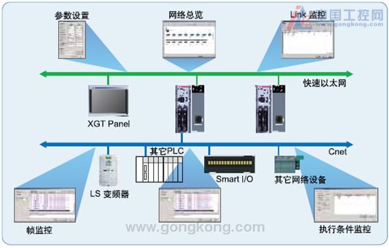 同时,XGB系列PLC免费提供便捷的用户界面,该软件具有各种网络诊断功能/监控功能和程序备份功能。PLC程序编辑、设计软件XG5000是基于Windows环境下开发的,为用户提供简单便捷的操作环境,支持多PLC、多程序功能,并且支持多种监控(梯形图监控、变量表监控、强制I/O监控、趋势监控和特殊模块监控)和诊断功能。可完全应用在Windows2000,XP(但在Windows98,ME系统中应用受限制)系统中。便捷的网络配置软件XG-PD,嵌套在XG5000软内,是优化了网络系统和通讯模块监控功能,可通过高效的网络管理实现与CPU的快速通讯,并且提供各种内置诊断功能(CPU条件,Link条件,服务条件,自动浏览,LOG,帧监控)。