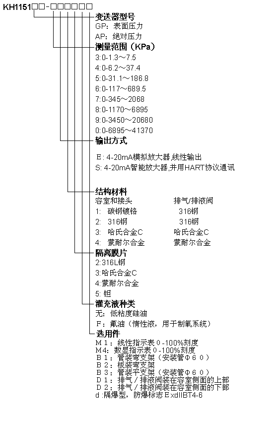 科昊最新推出KH1151智能型压力变送器主要用于测量气体、液体和蒸汽的正压力、负压力和绝对压力等参数,然后将其转换成DC4-20mA电信号输出。包括GP型(表压力)和AP型(绝对压力)两种类型,与智能放大板组合,可构成智能型压力变送器,可通过符合HART协议的手操器相互通讯,进行设定和监控。