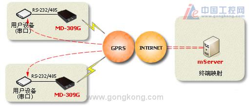 (4)在设备维护领域,如电梯监控、空调监控等,MD-309G可以快速嵌入用户的监测仪器,完成设备监控GPRS远传应用