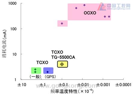 (图1) TCXO与OCXO的频率温度特性与消耗电流 | |||||||||||||||||||||||||