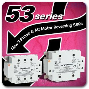 Crydom 提供的 53 系列现在还包括两个新的 3 相固态电机换向继电器,每通道额定电流为 25 或 50 安培。换向型号包括新 3 相 SSR 接触器型号里有的 IP20 安全触摸设计、A 类幅射要求及 3 级抗扰性能。换向型号适用于 3 至 32 VDC 输入控制,包括安全控制互锁电路,避免同时执行正向和换向命令。所有新推出的 Crydom 53 系列 SSR 接触器和电机换向 SSR 获得 UL & cUL 认可、TUV 认证,并且符合 CE 低压指令性文件的要求。有关 Crydom 新型 53 系列的更多信息,请就近联系 Crydom 分销商、代表或当地 Crydom 销售办事处,或者访问我们的网站 www.crydom.com/cn