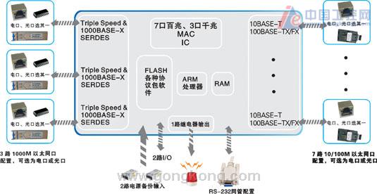 以太网接口:支持3路1000M以太网接口和7路10/100M以太网接口,可以任意配置为电口或光口。