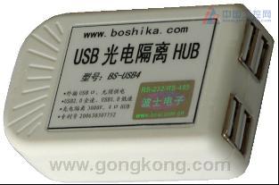 波仕电子的新一代USB光电隔离HUB具有超小型的外形(75*23*47mm)、是世界上最小的光隔USB HUB。支持USB2.0全速(12M)速率和USB1.0低速(1.5M)、隔离3000V电压、无须外接电源、无须驱动程序。由于USB信号的时序、幅值、方向、速率、规约都及其复杂,所以实现USB信号的光电隔离也是非常复杂的技术,这基本上代表了光电隔离领域的最高水准。波仕电子经过多年的研究,开发出这一具有国际领先水准的产品,获得专利并且已经成功推向市场。