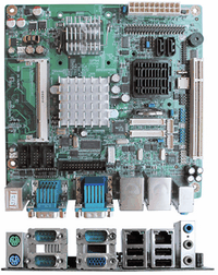 此外,完全集成的传统主板也可以很好解决问题,但需要满足复杂的应用要求和空间限制。这种情况下,用户只需要去寻找具有特定功能并适合既有空间的板卡。例如,假设某种应用需要一定的计算能力和足够的内存,并支持多显示、多磁盘、双高速以太网接口、丰富USB接口和遗留系统处理;对噪音、传热和功耗也有要求;系统必须能够从CF卡启动,板卡尺寸小于7’ x 7’;不需要更多的扩展槽。请看…….