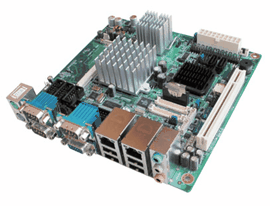 上述应用的解决方案可以为Intel Atom Mini-ITX主板,例如如下所述的研华AIMB-210。Mini-ITX主板于2001年上市,是规格为17 cm x 17cm (6.7’ x 6.7’) 的低功耗板,最初为入门级平台和工业应用设计。和一些外来板不同, Mini-ITX 板适合通用计算机应用,并使用相同的螺丝安装方式。但是,小巧和低功耗特点使其成为空间狭小的标准PC客制化应用的最佳选择。