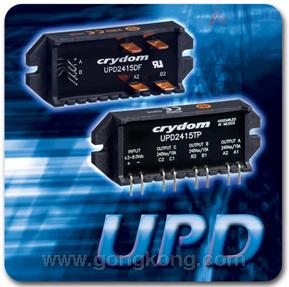 UPD 系列具有面板或 PCB 安装式单相、双相或三相固态继电器,每通道额定功率为 15 或 25 安培/280 输入电压,采用独特的紧凑型小体积或单列直插封装结构