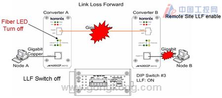 JetCon 3401G 不仅支持L.L.F(Link Loss Forwarding)功能,将连线状态变化信息告知远程中心管理系统,而且还提供一路继电器报警,针对端口和电源连接状态触发报警信号。此报警可通过简单DIP拨码开关来启动,通过触发外部报警设备来通知I.T.工程师或维护人员,从而节省了大量的维护时间。
