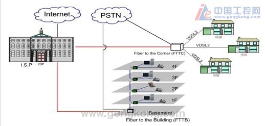 VDSL2技术还使用在互联网接入最后一英里,互联网服务提供商用光缆作为骨干连接到大楼的地下室(FTTB)或街道旁边(FTTC),然后使用存在POTS系统已经存在的1对双绞线电缆通过VDSL2信号传输语音和以太网数据流给用户。