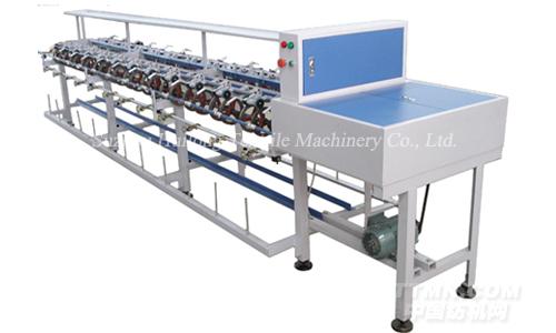 本产品是我公司系列花式捻线机的配套辅助设备。用于生产押线卷装,该卷装置于中空锭锭杆上随中空锭高速旋转,将押线以缠捻的方式加捻再由芯线和饰纱形成的花式纱线外部来固定已经形成的花式效应。