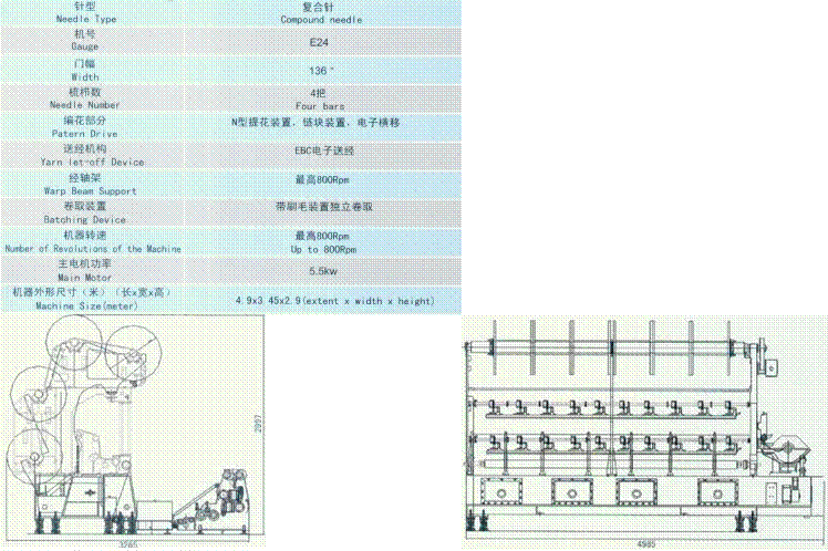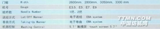 机器特点:油箱凸轮式,偏心连杆机构,电子送经、激光断纱自停装置等技术相结合保证了机器的高速运转及机器的高自动化程度,并且本机的梳栉数达到了7把,并且可以配备电子贾卡、电子横移等,使机器的织物更加能够满足顾客的需要。
