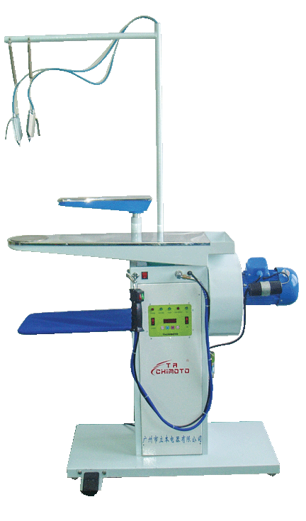 真空抽湿去渍台,是服装行业,洗染行业对服饰在进行洗涤,整理过程中预处理,后处理去渍的专用设备。有效地提高服饰洗涤,整理效果和效率。利用压缩空气、蒸汽、专用去渍液及水,使用抽真空去湿法,使服饰上部分顽固的污垢,在洗涤前或整理中进行强行去渍。因而被广泛地应用于洗衣服务业,服装制造业,及其他服饰整理业,具有去渍快,除污能力强的特点。