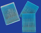 我公司生产的电脑绣花针是选用耐磨且弹性较强的GCr15钢线材作为原材料。引进德国莱茵制针公司的先进生产技术,针孔四角过度圆滑且研磨两次。其机针表面通过一次性镀硬铬,以达到5000转/分钟高速缝纫而不会变形。上机电脑绣花不易断线,适合各种丝、绒绣花。