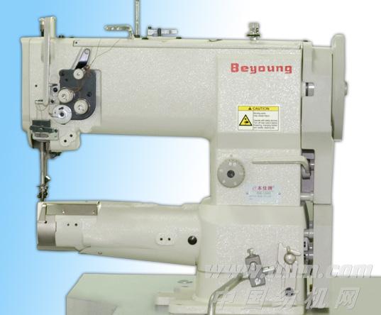 加大了针杆的行程、压脚提升量、还采用了双倍张