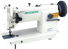 采用单针综合送料平缝机,采用滑杆挑线,上下轴由高精度螺旋伞齿轮传动,并采用自动润滑系统,具有转速高、振动小、噪声小、使用寿命长等特点。其综合送料的方式可防缝料层之间的滑移线迹美观整齐。适用于缝制各种人造革、皮革、帆布等中厚料 。