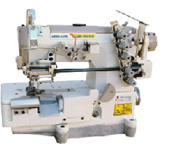 本系统绷缝机具有机械式送带装置,可将松紧带或蕾丝带之送料量及张力,控制得均匀而准确,具有切刀修边器装置,提高缝制质量。适用于内衣、内裤等。