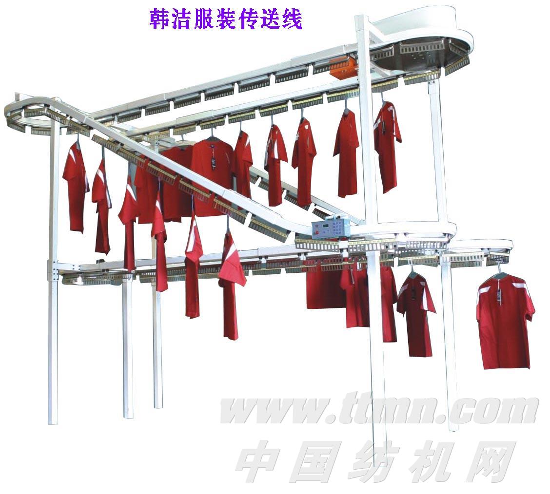韩洁服装输送线用途: 服装输送机是本公司最新研制的高品质产品,产品工艺设计先进与进口同类产品相媲美。该机具有省电、低噪音、任意地段都可以摆放,多种形状可选择等优点,是洗涤公司不可缺少的设备,是服装厂展示厅理想工具,此外,本厂可为顾客设计各种形状,任意件数挂口为厂家设计安装流水线作业的挂架,让您达到意想不到的效果。