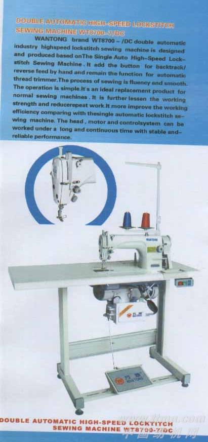 WANTONG brand WT8700-7/DC double automatic industry high speed lockstitch sewing machine is designed and produced based on The Single Auto High-Speed Lockstitch Sewing Machine. It add a button for backtrack/reverse feed and remain the function for automatic thread trimmer.The process of sewing is fluency and smooth. The operation is simple. It’s an ideal replacement product for normal sewing machines. It is further lessen the working strength and reduce repeat work.It more improve the working efficiency comparing with the single automatic lockstitch sewing machine. The head ,motor and control system can be worked under a long and continuous time with stable and reliable performance.