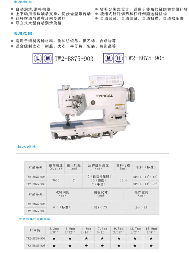 TW2-B875-905高速双针针送料大旋梭自动切线角缝平缝
