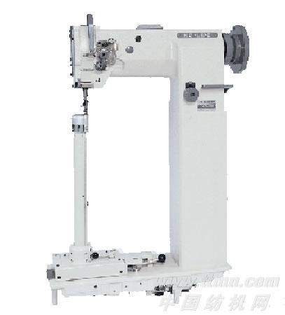 本机是海菱超高立柱式平缝机的系列产品。采用综合送料方式和超高立柱式缝台。特殊设计的缝台座。可向操作者方向倾斜。便于缝制物品的置入和取出。针板的设计,适用于缝制小曲度的物品。综合式送料使得缝纫多层物料顺畅自如,线迹稳定美观。最适宜于缝制皮靴、手提袋、帽子、假发等产品。