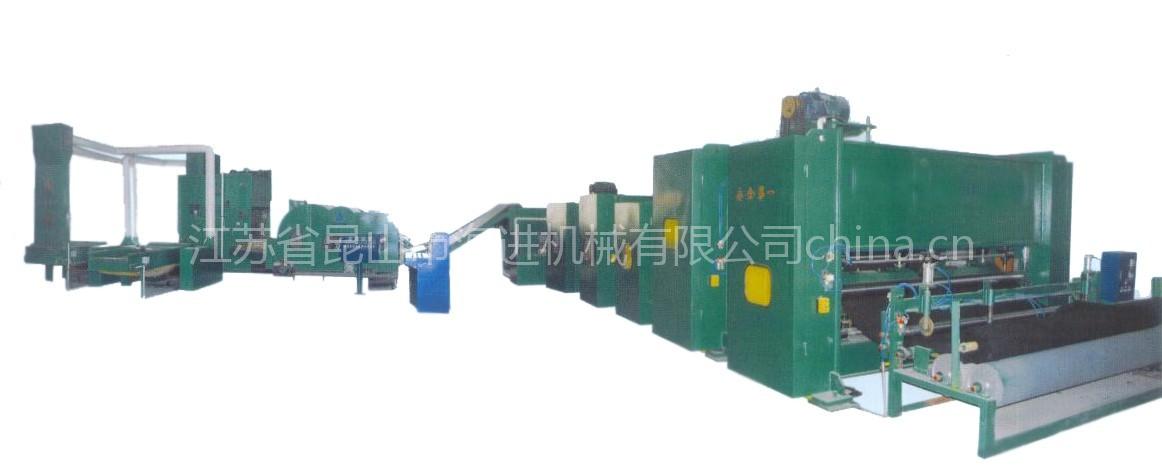 无胶棉、硬质棉生产线 预开松机→精开松机→给棉机→梳理机→直立棉铺网机→烘房→冷却系统