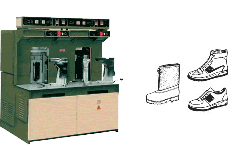 器将纺织或皮革帮面的鞋直接在模具中硫化成型,筒高可达350mm。机器配备了电子控制装置以自动控制硫化温度及时间继电器,保证在达到硫化时间后自动开模。成型站上及在工作台上的鞋楦温度通过变压器控制 公司...