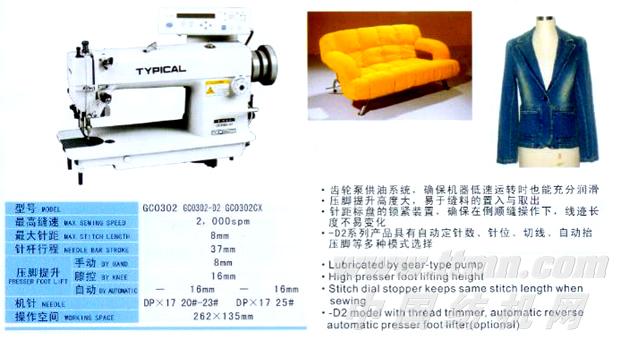 GC0302-D2上下送料自动加油自动剪线平缝机 公司名称:徐州胜家缝纫设备有限公司简介:徐州胜家缝纫设备有限公司成立于1990年元月18日,公司前身为胜家缝纫设备专业店是淮海经济区目前规模最大、品