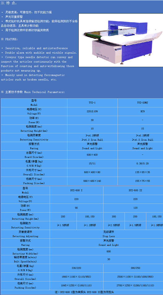 DYZ、TYZ、TY型验针机 公司名称:徐州胜家缝纫设备有限公司简介:徐州胜家缝纫设备有限公司成立于1990年元月18日,公司前身为胜家缝纫设备专业店是淮海经济区目前规模最大、品种最全的专营国产、进...