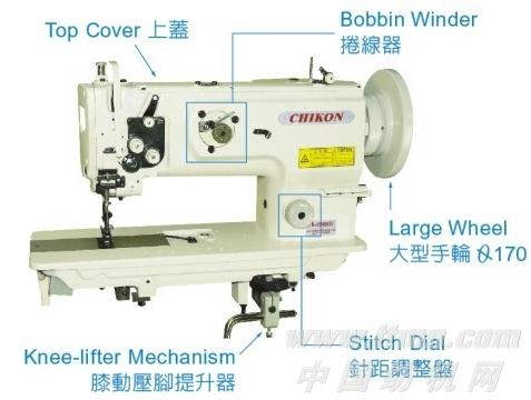 本机配有综合送料机构与垂直轴大釜,适用于手提袋的手把、汽车座椅、沙发、箱包类等等之厚物料之缝制。 特点 : 1,本机器采用综合送料机构、新式正矩型送料与押脚上下交替量机构,能精准轻易的车