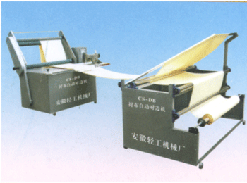 衬布自动对边机是切条机的主要辅助设备之一。 该机利用几何原理设计而成,具有自动找正,将衬布布边自动对齐,再通过拉布装置,将对齐布边的布送入缝纫机,车出布边上下松紧一致,整齐美观,效率较高,是裁切斜